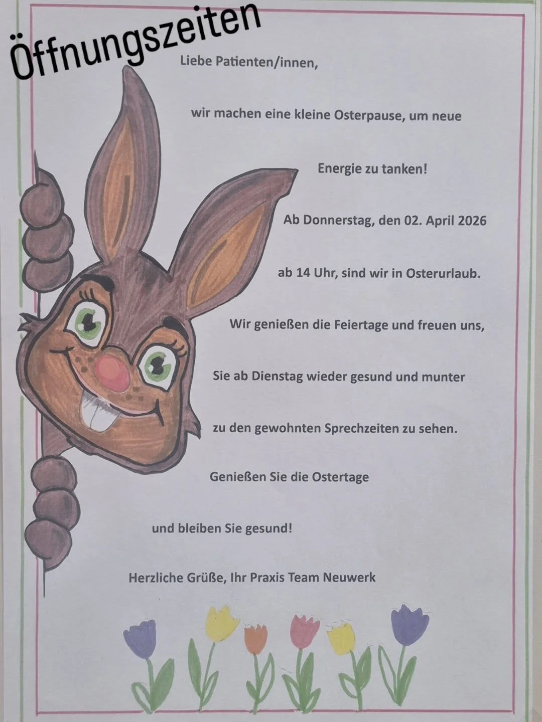 Unsere Gemeinschaftspraxis - Praxis Neuwerk steht für eine langfristige und vertrauensvolle Beziehung zu unseren Patienten. Wir legen großen Wert darauf, Ihnen kontinuierliche medizinische Versorgung auf höchstem Niveau zu bieten, und sind stets bestrebt, uns weiterzuentwickeln, um den sich wandelnden Bedürfnissen unserer Patienten gerecht zu werden.